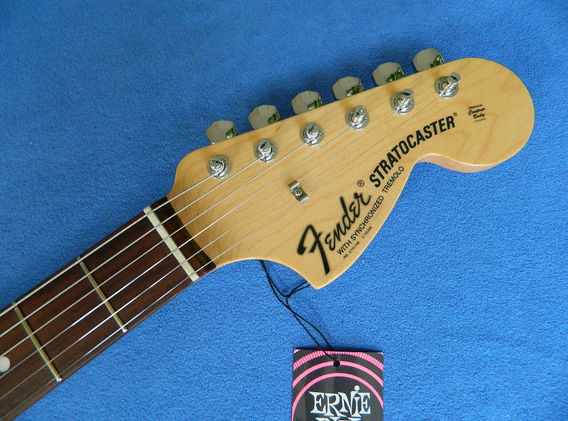 The Traditional II Series late 60's Stratocaster is a really good reissue of the late 60's USA Stratocaster. Late 60's Strats have the large headstocks like the 70's models but they have some subtle differences, notably, an enclosed trussrod rather than the "bullet" style which is accessed by removing the neck, a 4 bolt neck plate, "Fender" stamped bridge saddles and "With Synchronized Tremolo" still on the headstock transfer. The main difference from the original "traditional series" is that they have a more modern 9.5" fretboard radius. This particular instrument is in great condition & the only blemishes I found were 2 tiny dents (2-3mm) on the back of the guitar between the neck plate & the back plate. I have to describe them as a camera will not pick them up.